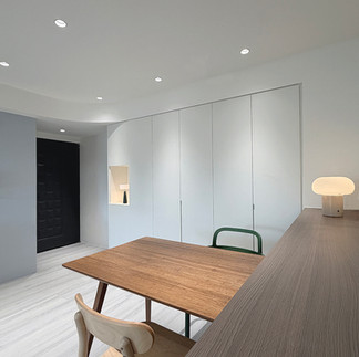 ▎玄關 x 餐廳:隱藏樑柱,營造純淨畫布空間